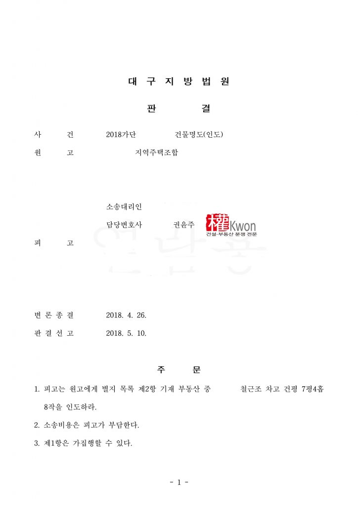 원고는 지역주택조합으로 사업부지 내의 토지, 건물소유자였고, 피고는 건물임차인으로서 사업자등록을 행하고 정상적으로 영업 중이었고, 상가임대차보호법이 적용되는 경우였습니다.