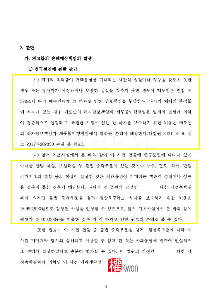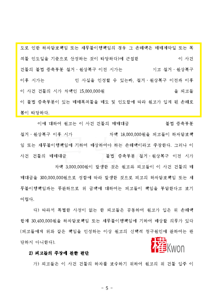 [부동산승소포인트] 불법건축물 매수인의 손해배상청구 승소사례