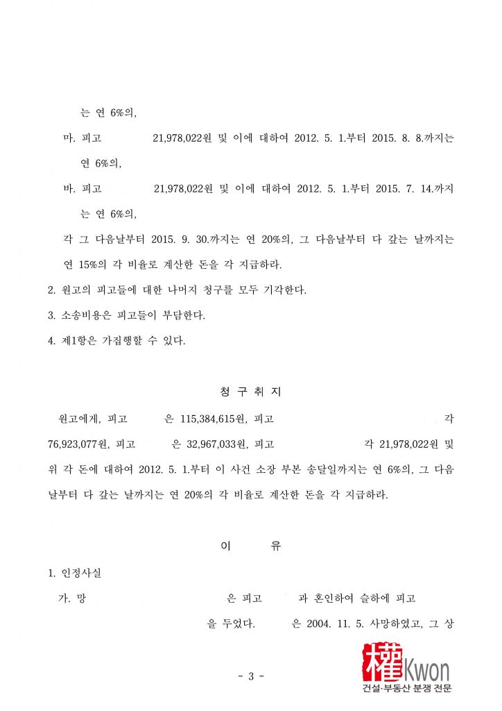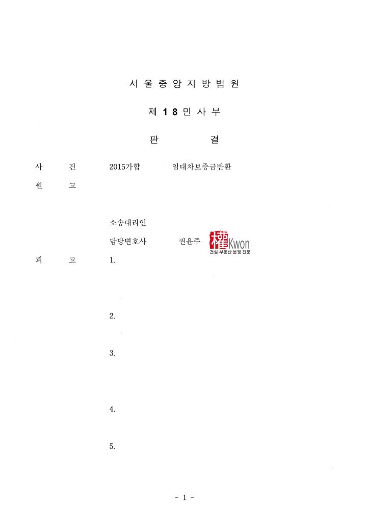 [임대보증금반환] 보증금반환청구 승소사례, 임대인 사망으로 공동상속인들이 피고가 된 사례