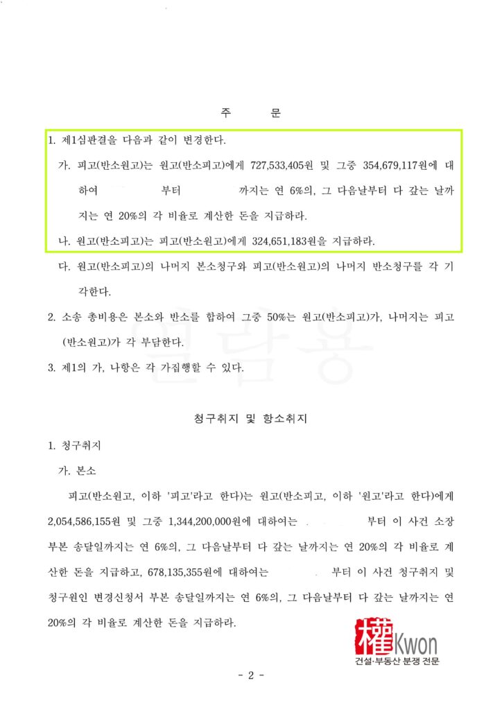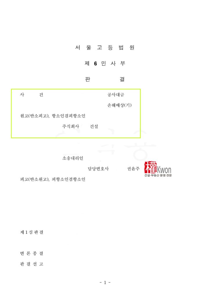 서울고등법원 추가공사대금 청구 항소인용 승소사례를 소개해드립니다.