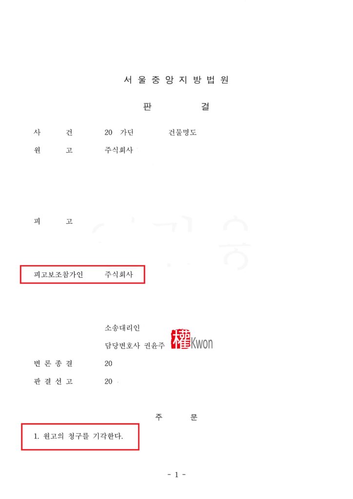 [명도소송] 명도소송 피고의 보조참가인, 명도청구 기각 방어승소