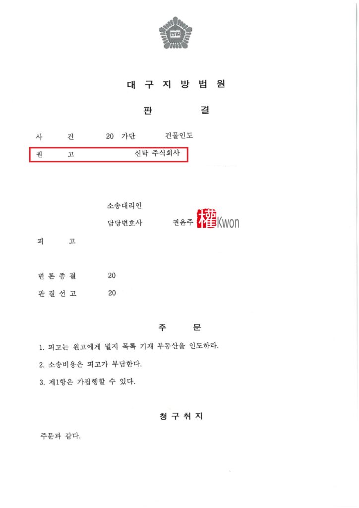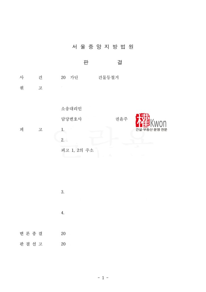 원고는 다른 판결에서 이미 계쟁건물의 원시취득자로 인정된 자이고, 피고는 건물점유자이며, 의뢰인은 피고에게 점유를 승낙한 신축건물 시행사로서 본 소송에 보조참가를 하였습니다.
