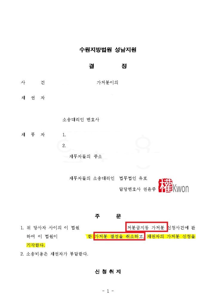 [가처분취소] 처분금지가처분 이의신청에서 원처분취소결정 승소