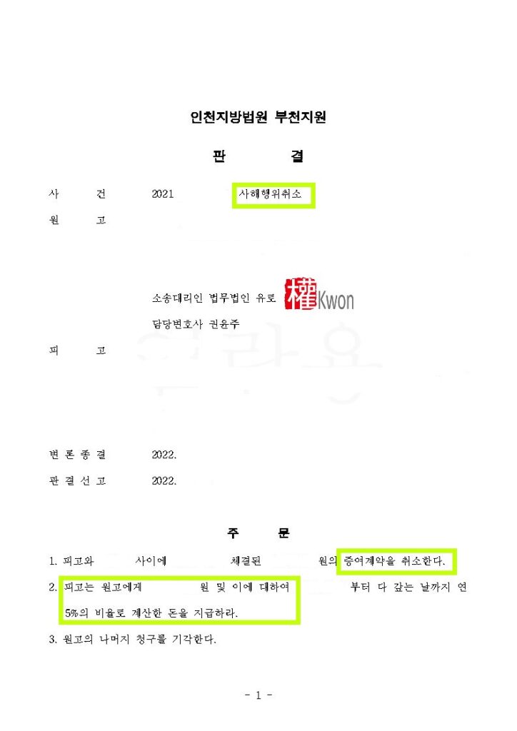 이번에는 사해행위취소 승소사례를 소개해드립니다.